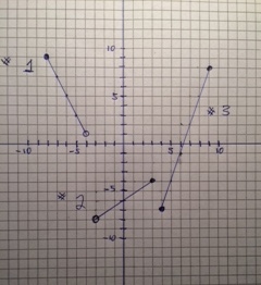 First take a given line and find the slope, then use the point slope formula to write an equation. Then define the domain over which the function occurs.